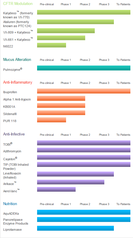 Below is a current CF Drug Pipeline showing the current state of drug and treatment development: